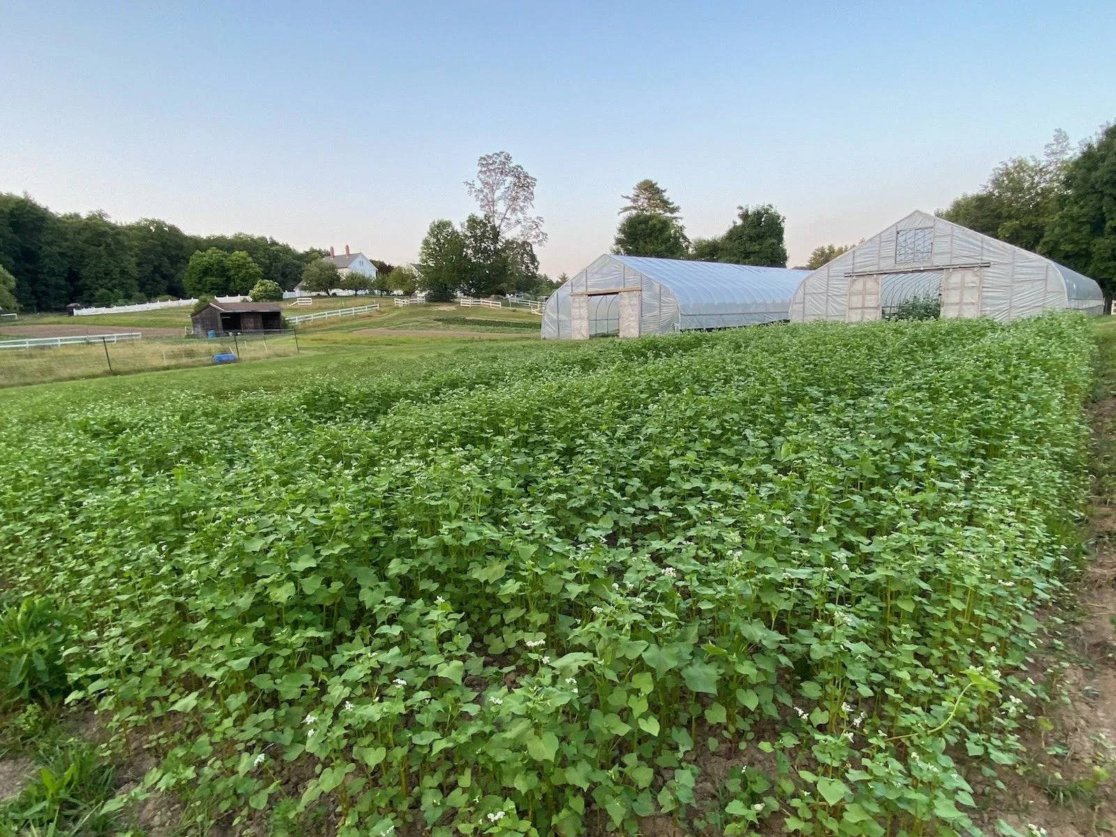 In our fallow plot, we seeded buckwheat about a month ago, and now it's in full bloom. We'll let it stay in flower for about 10 days or so before it starts heading out to seed, and not before many meditations we'll mow it down. We plant buckwheat as a summer cover crop to attract pollinators and beneficial insects to promote biodiversity in the garden and as a small added bonus, the organic matter of the plants will be worked into the soil.